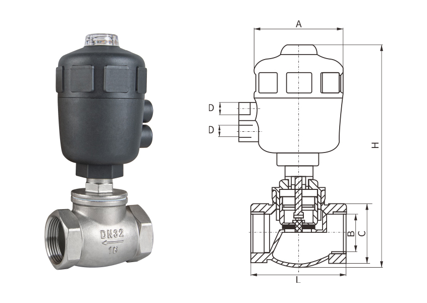 產品名稱:C款-塑料頭氣動腰鼓閥